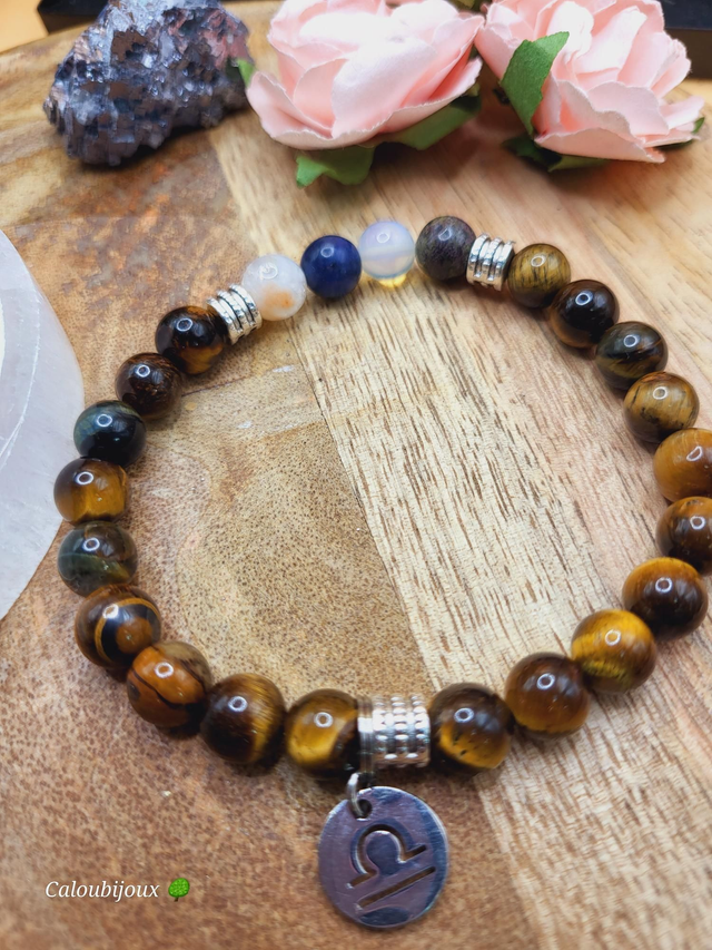 Bracelet perles naturelles 8mm montées sur fil élastique solide, pierres conseillées pour le signe de la balance