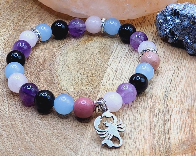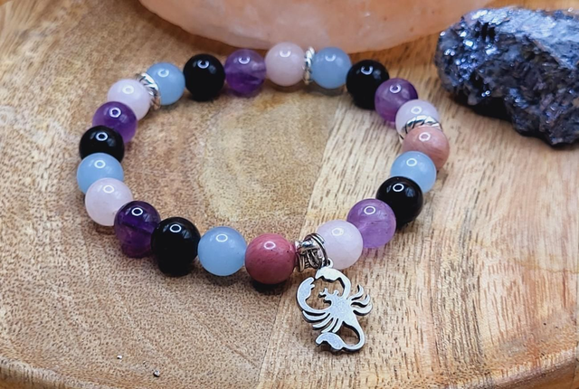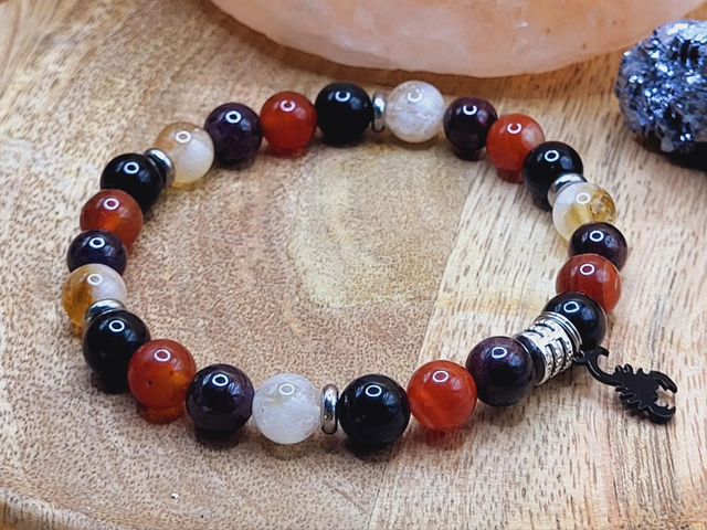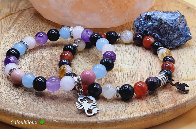 Bracelet perles naturelles 8mm montées sur fil élastique solide, pierres naturelles conseillées au signe astrologique du scorpion.
