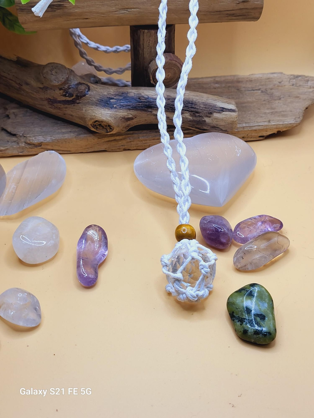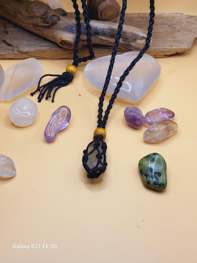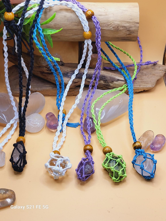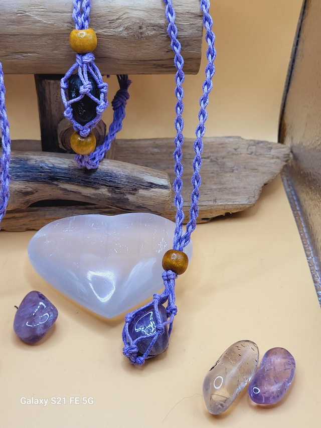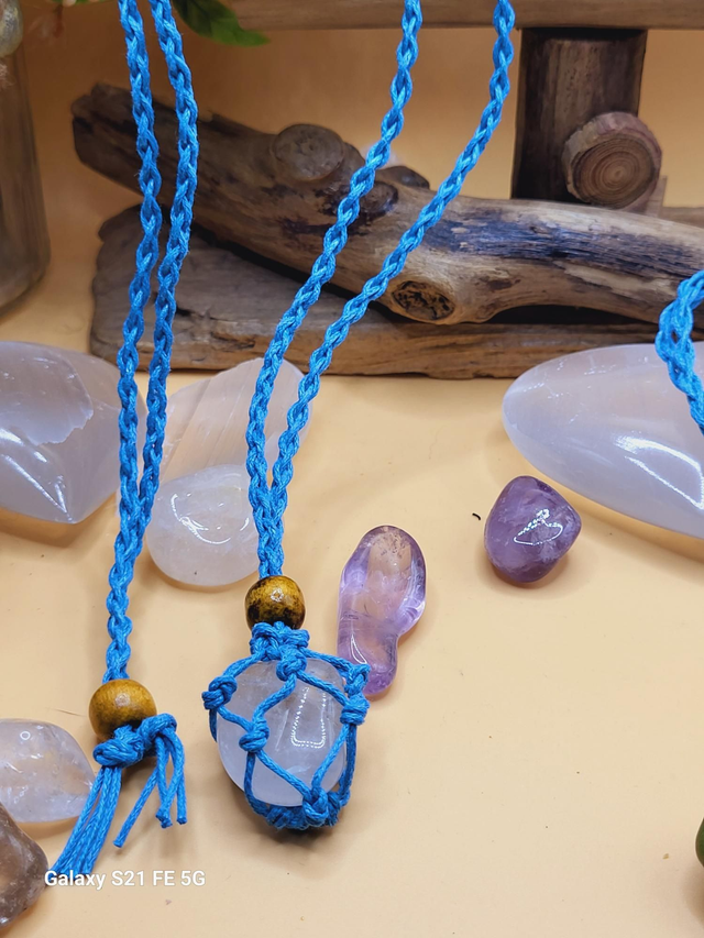 Collier tressé avec cage pouvant contenir une pierre roulée, vendu avec une pierre