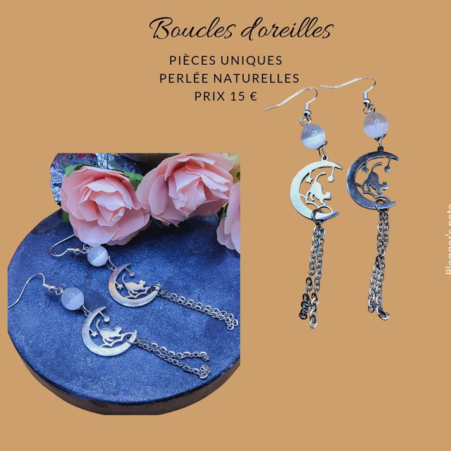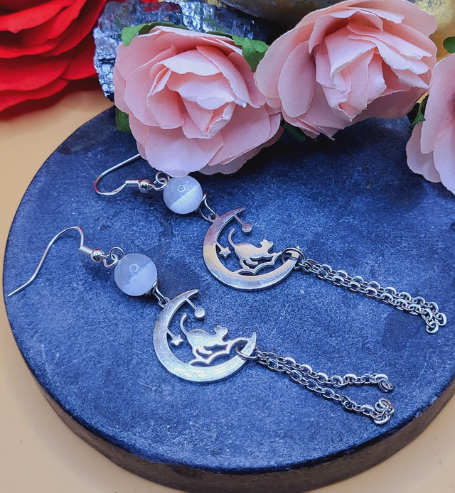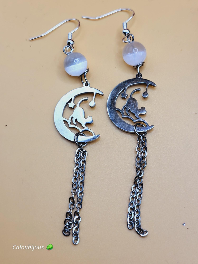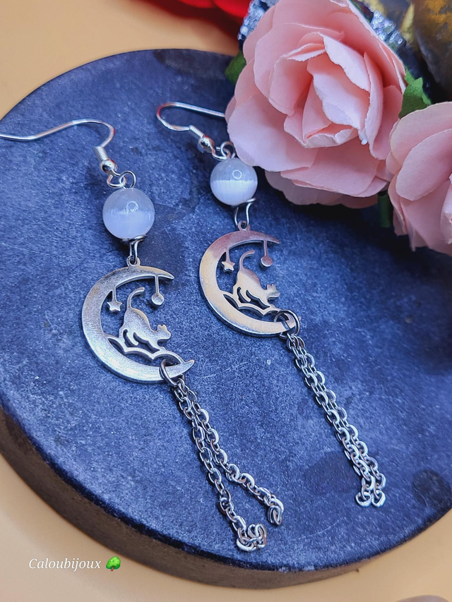 Boucles d'oreilles cat and moon